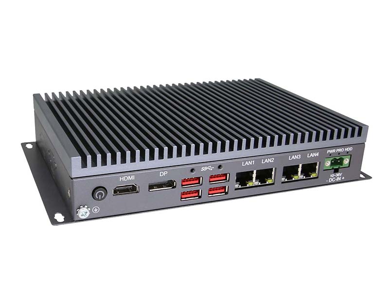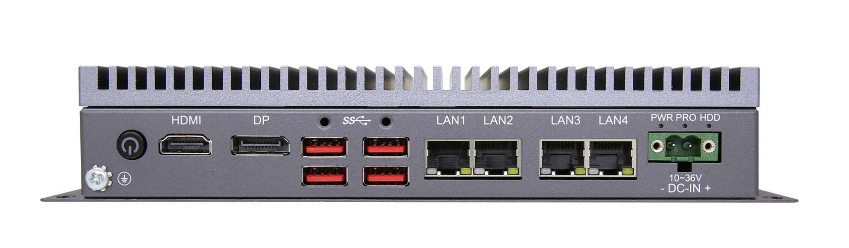 Intel? Celeron 4305UE CPU Dual Core, TDP 15W, 4 x LAN, 4 x COM (up to 6 x COM), 6 x USB, 10-36V power input, fan-less system